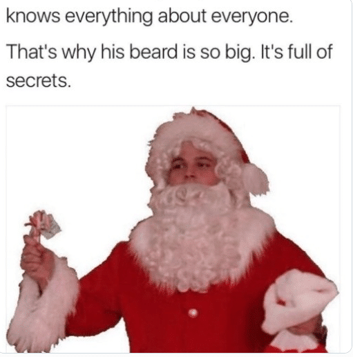The fact that there are two Mean Girls references in this one meme is too good. Not only do they have a picture of Damien when he dressed up as Santa Klaus during the film, but they also reference the quote, “That’s why his beard is so big. It’s full of secrets.” They might have changed the gender of the quote, but hey, it is a job well done.