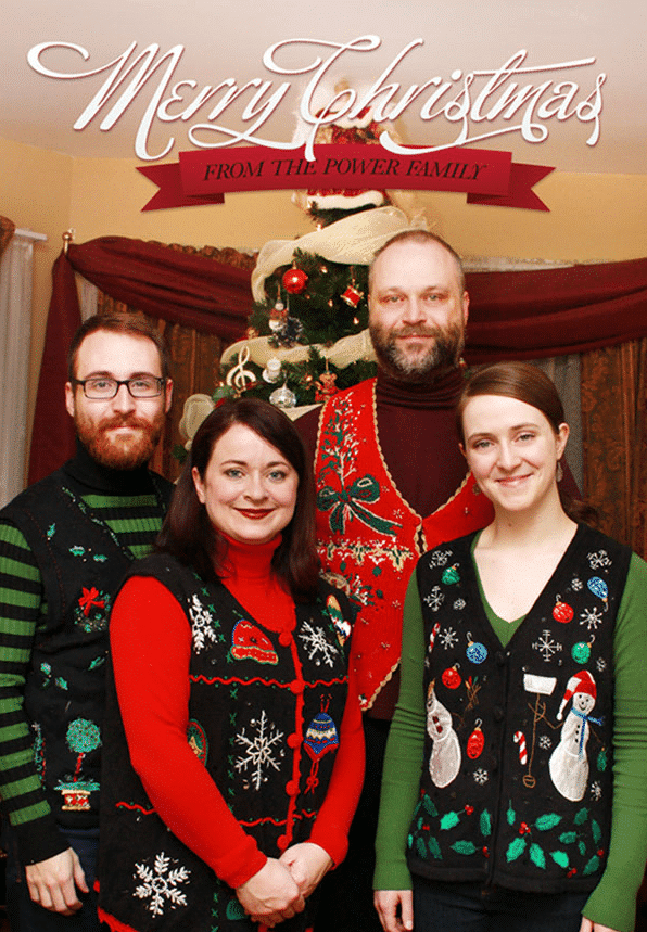 This year, for a change, the Power family – who’s famous for their legendary Christmas cards – decided to do a normal family photo. No theme, no cultural (or other) references, no excessive makeup. Perhaps they needed a break one year, and they’re planning something huge this year instead! We can only hope.